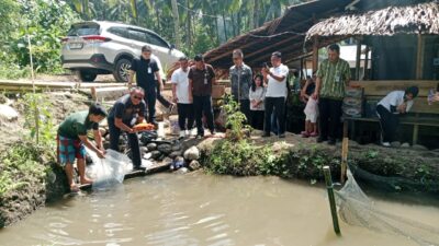 Dalam acarah tersebut kakanwil, menaburkan sekitar 1000 beni bibit ikan air tawar ,dan juga beberapa induk ikan mas.